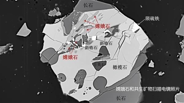 據悉,“嫦娥石”是一種磷酸鹽礦物,呈柱狀晶體,存在于月球玄武巖顆粒中。